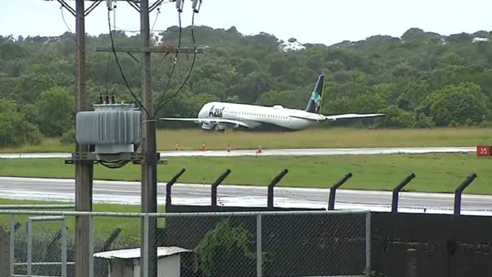 Na madrugada desta quarta-feira (10), um avião perdeu o controle ao pousar no Aeroporto Internacional de Salvador, na Bahia. A aeronave acabou saindo da pista e foi parar na área verde do local.