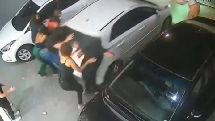 Uma comerciante de 32 anos foi presa em flagrante por tentativa de homicídio na noite de quarta-feira (11) em Taboão da Serra, na Grande São Paulo, após atropelar um grupo de pessoas e invadir um salão de beleza com um carro. Uma criança de sete anos estava dentro do carro e presenciou toda a confusão.O salão de beleza fica na rua Elizabeta Lips, no Jardim Bom Tempo. Segundo a SSP (Secretaria da Segurança Pública), testemunhas disseram que a mulher estacionou seu veículo em uma das vagas do salão, e foi a outro estabelecimento que fica na parte de cima do imóvel.CONTEÚDO RELACIONADO:Motorista atropela motociclista após discussão em MarabáAnanindeua: Idosa morre atropelada ao tentar salvar cachorroEla foi informada, segundo o registro, de que não poderia parar ali, já que as vagas eram para os clientes do salão de beleza, mas, ainda assim, estacionou.Ao retornar, a comerciante não conseguiu sair pois o proprietário do local, como não havia vagas disponíveis, colocou seu automóvel na frente dos carros estacionados.Mesmo assim, a mulher tentou tirar o carro e raspou no veículo de outra cliente, que pediu cuidado. Nesse momento, começou uma discussão entre as duas e funcionários do salão, que acabou envolvendo cerca de dez pessoas.Quer mais notícias do Brasil? Acesse nosso canal no WhatsApp!O proprietário tirou seu carro e abriu passagem para ela sair, mas ela continuou discutindo, de acordo com o registro.Nas imagens de câmera de segurança é possível ver as pessoas próximas à janela do carro discutindo com a mulher. Ela manobra o carro diversas vezes para tentar sair e bate algumas vezes nos veículos que estão ao lado.A comerciante desce do veículo e acontecem algumas agressões físicas. Ela volta ao veículo, dá ré, e parte para cima de oito pessoas que estavam atrás. Algumas caem. Ela invade o estabelecimento com o veículo destruindo as paredes de vidro e outras partes.VEJA O VÍDEO!VÍTIMASQuatro pessoas, de 31, 32, 41 e 44, foram atropeladas. O Samu (Serviço de Atendimento Móvel de Urgência) foi acionado e duas das vítimas foram levadas ao hospital. O estado de saúde deles não foi divulgado.A comerciante foi conduzida até a delegacia pela GCM (Guarda Civil Municipal) onde foi presa em flagrante por tentativa de homicídio e permaneceu à disposição da Justiça. O delegado realiza oitivas com as testemunhas e analisa o vídeo disponibilizado pelo salão de belezaA reportagem não conseguiu contato com a advogada da mulher. A defensora, identificada como Magda Machado, disse à Globo que não concorda com a prisão.”Totalmente desproporcional porque nós temos provas, vídeos que demonstram que ela é a vítima. As pessoas que estavam dentro do salão começaram a agredi-la, não só verbalmente, mas fisicamente”, disse.Segundo a defensora, a mulher ficou desesperada. “Ela tentou entrar no carro para sair, em momento de desespero, ela estava com a filha, uma criança de sete anos, e mesmo assim não foi respeitada. Ela tentou sair dali, foi dar marcha para sair, acabou entrando a ré e foi isso que aconteceu”, afirmou.