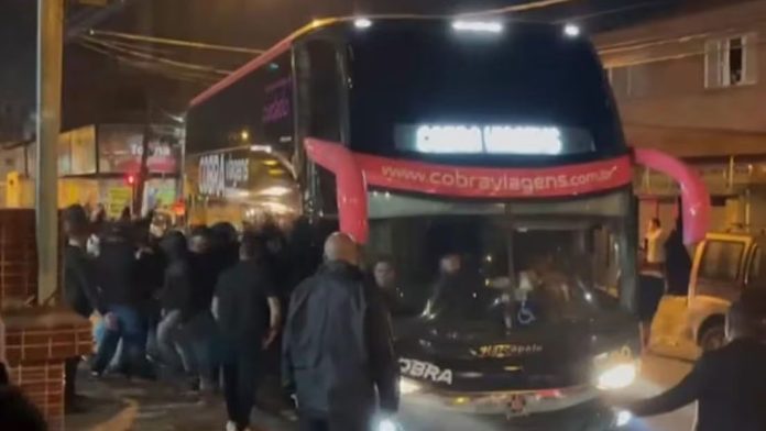 Os manifestantes cercaram o ônibus do clube e impediram que os jogadores descessem do veículo. Eles soltaram rojões e gritaram palavras de ordem contra o elenco e a diretoria.