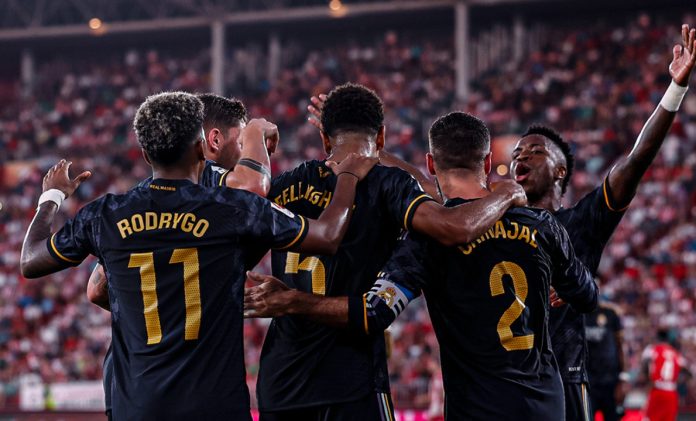 O Real Madrid bateu o Almería, de virada, e chegou a duas vitórias em dois jogos no Campeonato Espanhol. O placar de 3 a 1 foi construído com dois de Bellingham e um bonito gol de Vinicius Júnior. Arribas foi quem abriu o placar.Com o resultado, o Real empata na liderança com o Valencia. O Almería perdeu as duas e ainda não pontuou.Na próxima rodada, o Real Madrid visita o Celta, e o Almería enfrenta o Cadiz também fora de casa.O JOGOGols logo de cara. Em casa, o Almería começou ligado e logo no primeiro ataque abriu o placar, e com “lei do ex”. Arribas, que é cria do Real Madrid, fez 1 a 0. Aos poucos, o time de Carlo Ancelotti equilibrou as ações e não demorou a empatar, em lance que Bellingham mostrou oportunismo.Virada e brilho brasileiro. O segundo tempo começou em um ritmo mais lento, mas o Real Madrid logo conseguiu a virada. Bellingham apareceu bem para desviar e fazer o segundo dele no jogo. Pouco depois, o inglês tocou para Vinicius Júnior na entrada da área, e o brasileiro, com um bonito toque, ampliou a vantagem. Nos minutos finais, Kross chegou a balançar a rede, mas o gol foi anulado após arbitragem ver falta no início do lande em análise no VAR.LANCES IMPORTANTES1x0 – Aos 2 minutos do 1ºT, o Almería saiu em contra-ataque, Robertone cruzou e Arribas, sozinho, cabeceou para abrir o placar.1×1 – Aos 18 minutos do 1ºT, Valverde cabeceou, a bola bateu em Bellingham, na zaga e voltou nos pés do meia, que empatou o duelo.Defesa – Aos 33 minutos do 1ºT, Baba chutou de fora da área e Lunin teve de buscar no canto direito para fazer a defesa.Anulado – Aos 49 minutos do 1ºT, o Real Madrid balançou a rede com Kross, mas o gol foi anulado após análise do VAR. O árbitro viu falta de Carvajal em Akieme no começo do lance.1×2 – Aos 14 minutos do 2ºT, o Real Madrid trocou passes na intermediária e Fran García levantou. Bellingham surgiu entre os marcadores e desviou de costas, contando com uma saida atabalhoada do goleiro para fazer o segundo.1×3 – Aos 27 minutos do 2ºT, Bellingham acionou Vini Jr. na área. O brasileiro domina e bate por cima do goleiro Maximiano, marcando um bonito gol.Quase – Aos 43 minutos do 2º T, Modric lança Carvajal na área. O lateral finaliza de primeira e Maximiano consegue fazer a defesa.E MAIS