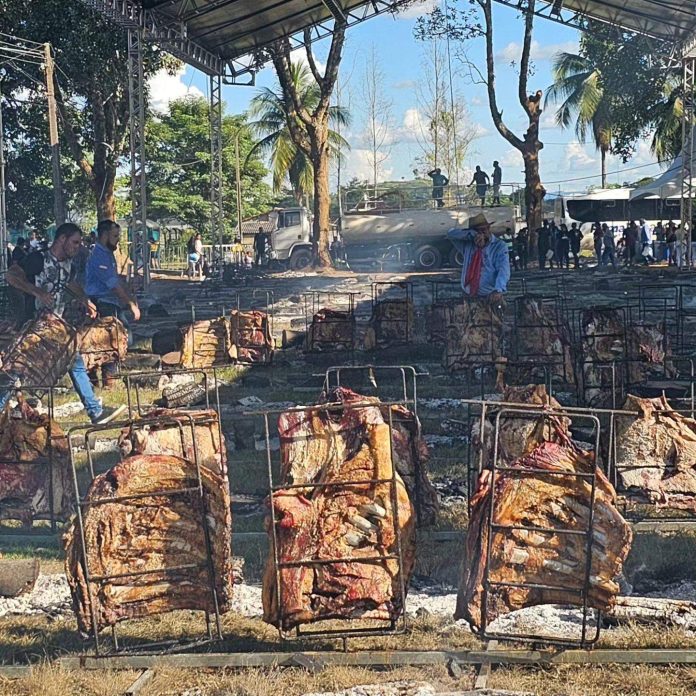 Na celebração dos 35 anos de emancipação, Parauapebas, no sudeste do Pará, distribuiu 1,5 mil costelões, totalizando mais de 25 mil toneladas de carne, oferecidos a um público de cerca de 65 mil pessoas nesta quarta-feira (10). O evento é considerado pela prefeitura o “maior churrasco de costela no fogo de chão do mundo”. O oferecimento é do Sindicato dos Produtores Rurais de Parauapebas (Siproduz), em parceria com a Associação Nacional dos Amigos dos Centros de Tradições Gaúchas (CTG) e conta com o apoio do prefeito Darci Lermen.