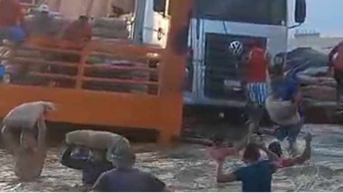 Uma parte da carga de cimentos transportada por uma balsa foi doada para moradores da Ilha de Mosqueiro, distrito de Belém. O belo gesto foi registrado na última quinta-feira (15).