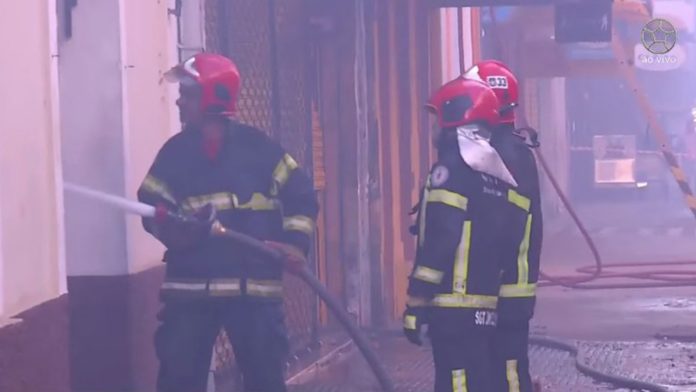 Bombeiros fazem rescaldo do incêndio no Centro de Belém
