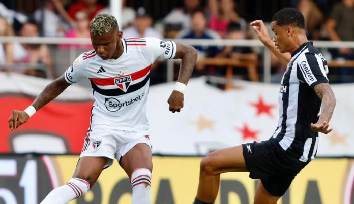 São Paulo e Botafogo empataram por 0 a 0 neste sábado (19), no Morumbi, em jogo válido pelo início do returno do Brasileirão.A partida contou com chances dos dois lados. As finalizações não tinham exigido dos goleiros até os acréscimos da segunda etapa, quando Lucas Perri apareceu bem em finalizações de Nathan Mendes e Pato — essa última anulada por impedimento.Luciano chegou a marcar duas vezes, mas estava impedido em ambos os lances. Lucas, Juan e Pato tiveram finalizações defendidas por Lucas Perri que acabaram também anuladas diante de impedimentos assinalados. Foram oito impedimentos marcados do ataque tricolor.O São Paulo escalou um time quase inteiro reserva, com James Rodríguez como titular pela primeira vez. Com status de titulares absolutos, só Arboleda, Pablo Maia e Luciano iniciaram a partida; Gabi Neves vem voltando de lesão e Welington tem sido titular, mas é o único lateral-esquerdo saudável no elenco.O centroavante Diego Costa estreou pelo Botafogo. O experiente jogador que fez carreira na Europa entrou aos 28 minutos da segunda etapa.Com o empate, o Botafogo segue na liderança com 48 pontos. O São Paulo foi a 28 e segue no meio da tabela.JAMES DISCRETOO Tricolor poupou a maioria dos seus titulares no duelo com o líder do Brasileirão e foi a chance para James Rodríguez estrear como titular e jogar pela primeira vez no Morumbi. O colombiano saiu no intervalo e teve atuação discreta, como o restante do time, na primeira etapa.Com apenas oito minutos de jogo, o São Paulo perdeu um dos únicos titulares escalados: o volante Pablo Maia desabou no gramado com um mal-estar e foi substituído por Luan. A partida se mostrou muito estudada, com o Tricolor tendo mais a posse de bola, mas sem criar chances e e recebendo bastante marcação pressão logo na saída de jogo.Juan teve a principal chance do Tricolor na primeira etapa, mas as melhores oportunidades de gol foram do Botafogo, sobretudo no segundo tempo. Janderson teve duas chances, mas errou a pontaria. Depois, o zagueiro Diego Costa apareceu para evitar que a finalização de Luis Henrique encontrasse as redes.Mesmo com a entrada de titulares como Lucas e Calleri, o Tricolor não conseguiu levar perigo ao gol de Lucas Perri em lances legais. Luciano chegou a marcar duas vezes, mas estava impedido em ambos os lances; Juan e Lucas chegaram a finalizar para defesa do goleiro, mas também foi flagrado impedimento no lance. No fim, Pato teve boa chance, mas Perri fez defesa sensacional — o lance também foi anulado por impedimento.LANCES IMPORTANTESPerdeu! Aos 10 minutos, o São Paulo teve a primeira chance do jogo. Juan foi lançado, invadiu a área sozinho e ficou cara a cara com Lucas Perri, mas bateu muito mal e em cima do goleiro botafoguense.Pra fora! O Botafogo teve sua primeira chance aos 30 minutos. Janderson recebeu pelo meio e viu a boa passagem de Eduardo. O meia invadiu a área sozinho, mas bateu para fora.Impedido, mas perdeu de novo! Juan foi lançado por Luciano e partiu sozinho do meio-campo. Ele avançou, invadiu a área exatamente como no primeiro lance e novamente bateu em cima de Lucas Perri. Após a resolução do lance, o auxiliar levantou a bandeira marcando impedimento.Perdeu! No início da segunda etapa, Janderson ganha de Diego Costa pelo alto, traz para a esquerda e bate forte, mas a bola passa ao lado do gol de Jandrei.Pra fora! Aos 14 minutos, Tchê Tchê pega rebatida da zaga do São Paulo na entrada da área e arrisca de fora da área. A bola passa com perigo, mas sai ao lado do gol de Jandrei.Não entra! Aos 19, Tchê Tchê bate de fora, a bola desvia e ia ficando para Janderson na cara do gol, mas antes que o atacante pudesse dominar, o goleiro Jandrei sai para abafar. A bola fica viva na área, Luis Henrique tenta mandar para o gol, mas Diego Costa coloca o corpo na frente e salva o São Paulo.Sensacional, Perri! Welington puxou contra-ataque e lançou Alexandre Pato, que avançou livre e bateu da entrada da área, mas Lucas Perri fez brilhante defesa com uma das mãos. O lance foi anulado por impedimento, mas a imagem não foi conclusiva — como não resultou em gol, o lannce não foi revisado pelo VAR.SÃO PAULO 0x0 BOTAFOGOSÃO PAULOJandrei; Nathan, Arboleda, Diego Costa e Welington; Pablo Maia (Luan), Gabi Neves (Pato), Michel Araujo e James Rodríguez (Lucas); Luciano (Rodriguinho) e Juan (Calleri). Técnico: Lucas Silvestre (auxiliar)BOTAFOGOLucas Perri; Di Placido (JP), Cuesta, Adyelson e Marçal (Hugo); Marlon Freitas, Tchê Tchê e Eduardo; Victor Sá (Junior Santos), Luis Henrique (Segovia) e Janderson (Diego Costa). Técnico: Bruno Lage.Estádio: Morumbi, em São PauloJuiz: Ramon Abatti Abel (SC)Assistentes: Alex dos Santos (SC) e Thiaggo Americano Labbes (SC)VAR: Daniel Nobre Bins (RS)Cartões amarelos: Di Placido e Tchê Tchê (Botafogo); Diego Costa, Luciano e Welington (São Paulo)E MAIS