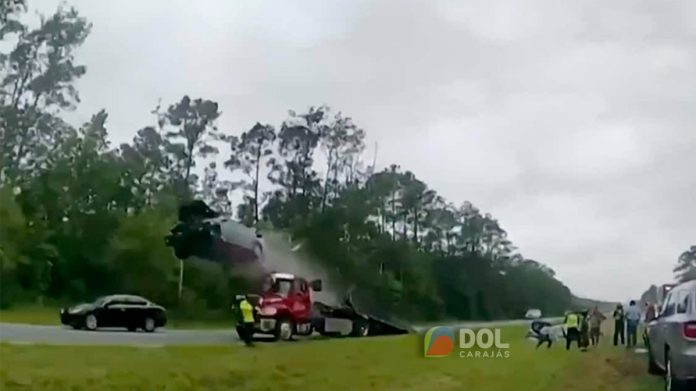 Ultrapassar o limite de velocidade permitido é apontado pela Organização Mundial da Saúde (OMS) como uma das principais causas de acidentes do mundo.Uma motorista ficou gravemente ferida após sofrer um acidente de carro inusitado em uma rodovia do estado da Georgia, nos Estados Unidos. A câmera corporal de um policial filmou o momento em que o veículo sobe a rampa de um guincho e voa mais de 30 metros adiante.O guincho estava parado na beira da rodovia atendendo outra ocorrência, quando a motorista, que é da Flórida, veio em alta velocidade e subiu no guincho, que estava na posição para embarque de um carro.LEIA TAMBÉM:+ Cientistas filmam peixe mais rápido do mundo caçando. Veja!  + Ilha na Itália oferece R$ 76,5 mil a quem se mudar para láEla ficou gravemente ferida e o seu carro, bem danificado. A peripécia também danificou o caminhão, cuja plataforma estava abaixada e outro carro que passava pelo local.A velocidade máxima no ponto da rodovia em que houve o acidente é de 100 km/h. A motorista foi internada com ferimentos graves, mas o estado de saúde dela não foi informado, segundo o Fox 5 Atlanta.VEJA O VÍDEO DO CARRO VOANDO!