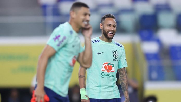 Sob o comando do técnico Fernando Diniz, a Seleção Brasileira realizou o segundo treino em solo paraense, visando a estreia das Eliminatórias para a Copa do Mundo de 2026. O Brasil encara a Bolívia nesta sexta-feira (8), às 21h30, no Estádio Olímpico do Pará, que vem sendo palco dos treinamentos. Os jogadores entraram em campo às 18h.Após uma conversa com o treinador, foi feito um aquecimento no círculo central com uma roda de bobo. Logo em seguida, o grupo foi dividido em dois, com um trabalhando o passe rápido em campo reduzido e o outro a movimentação ofensiva. O atacante Neymar deixou o gramado logo no início para refazer um curativo no punho, mas seguiu treinando normalmente.Após meia hora de treinamento, a imprensa precisou deixar o treinamento. O Brasil finaliza a preparação para a partida contra a Bolívia nesta quinta-feira (7). O treino está programado para acontecer às 17h. Depois disso, às 19h, é a vez dos bolivianos usarem o Olímpico do Pará.Provável escalação: Alisson; Danilo, Marquinhos, Nino e Renan Lodi; André, Casemiro e Bruno Guimarães; Neymar, Rodrygo e Richarlison