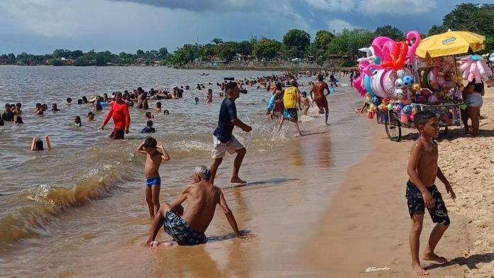 Acompanhada pela família, a técnica de enfermagem Cleide Lima, 33 anos, não viu problema na grande movimentação encontrada na praia. Moradora do município de Ananindeua, ela aproveitou o domingo de julho para conhecer Mosqueiro. “Por incrível que pareça, é a primeira vez que a gente vem em Mosqueiro e estamos adorando”, comentou, minutos antes se registrar a visita com a família em uma foto. “Com esse calorão que está fazendo, só uma praia pra amenizar”.LEIA TAMBÉM:+ Saiba qual a temperatura que pode matar uma pessoa de calor+ Helder inaugura viaduto e entrega nova avenida Ananin+ Segup apreende linha com cerol em Mosqueiro e Salinas