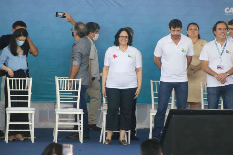 “Nós declaramos Breves a capital do Brasil por 24 horas”, disse Damares Alves ao iniciar sua fala na cerimônia.