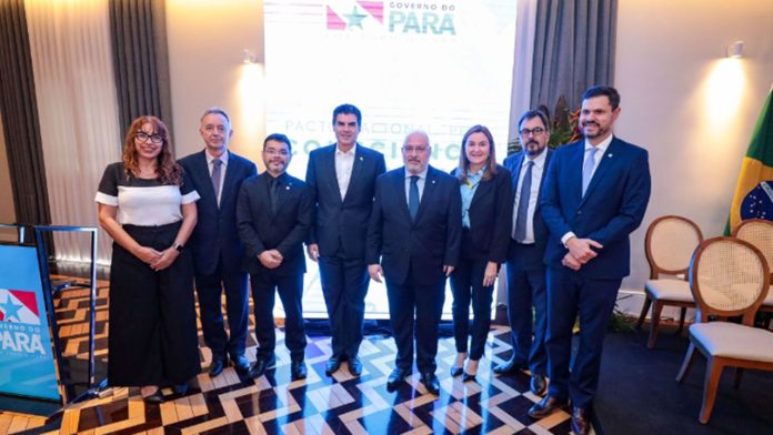 O Governo do Pará e demais instituições formalizaram a adesão ao Pacto Nacional pela Consciência Vacional. O documento foi assinado, nesta quinta-feira (17), no Palácio dos Despachos, com a presença de diversas autoridades. As informações são do MPPA.Com a presença do governador Helder Barbalho, o evento reuniu o presidente da comissão de saúde, conselheiro Jayme Oliveira Neto, o Corregedor-Geral Oswaldo D’Albuquerque Silva Neto e o presidente da Comissão de Preservação da Autonomia do Ministério Público, Ângelo Fabiano Farias.O procurador geral de justiça do Pará, César Mattar Junior e o presidente da Associação do Ministério Público do Pará (AIMPEP), Alexandre Marcus Fonseca participaram da reunião pelo Ministério Público do Pará.As autoridades reforçam a ideia de promover o estudo e a ciência no campo de saúde contra a desinformação, as chamadas fake News. A medida é abraçada por meio do Ministério da Saúde, do Governo Federal.Durante a assinatura do termo, governo do Pará e autoridades do judiciário reforçaram a ideia de que é necessário incentivar a população para cuidar da saúde e tomar a vacina, a fim de estar protegido contra várias doenças e evitar a propagação de vírus, como ocorreu durante a pandemia da covid-19.