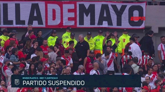 Uma partida do Campeonato Argentino foi interrompida no último sábado (3) por causa de um incidente trágico no estádio Monumental de Nuñez, em Buenos Aires. O jogo entre River Plate e Defensa y Justicia estava empatado em 0 a 0 quando o árbitro Fernando Rapallini decidiu suspender o confronto aos 25 minutos do primeiro tempo.