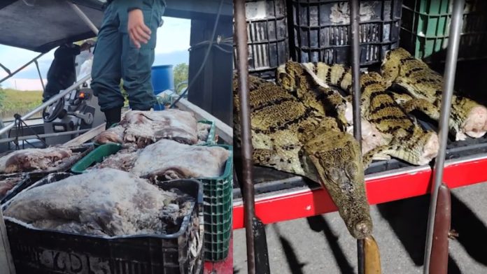 A Polícia Militar do Pará prendeu em flagrante, um homem suspeito de cometer crime ambiental em Muaná, no arquipélago do Marajó. Ele foi identificado como José Júlio.Com o suspeito foram encontrados 300 quilos de carne de capivara, quatro jacaré recém-abatidos, além de uma arma de fogo e drogas.