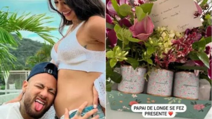 A namorada de Neymar, Bruna Biancardi, vivenciou hoje o seu primeiro Dia das Mães. A influenciadora está grávida de seu 1º filho, fruto da relação com o craque do PSG. Neste domingo (14), Neymar presenteou a amada com um mimo de valor bem alto.Bruna ganhou um buquê de flores especial com um cartão personalizado que continha a seguinte frase escrita por Neymar: “Para a mamãe mais linda do mundo. Beijos, Neymar. Você é muito especial”.O presente foi compartilhado pela influencer no Instagram, que demonstrou ficar muito feliz com o mimo do namorado. “Papai longe se fez presente”, disse ela na legenda dos Stories.