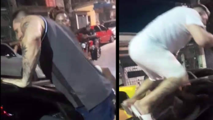 Um aniversário no bairro do Jurunas, em Belém, na última segunda-feira (14), teve muita festa e farra pelas ruas. Nas redes sociais, um vídeo em especial viralizou ao mostrar um pouco de “excesso” por parte de um dos convidados.Vídeo: mulher revoltada destrói carro a pedradas em salinasDurante as comemorações, um convidado da festa subiu em cima de um carro e acidentalmente quebrou o vidro traseiro do veículo. A cena foi toda filmada por outra pessoa que estava na comemoração e ficou chocada com o estrago causado ao carro.”Meu Deus do céu”, grita uma mulher após ver o vidro sendo espatifado pelo peso do homem. Aparentemente ele não ficou ferido, mas causou um belo prejuízo ao veículo.Veja: