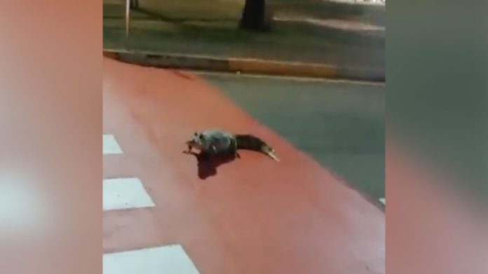 Vídeo: jacaré é flagrado atravessando a rua na capital