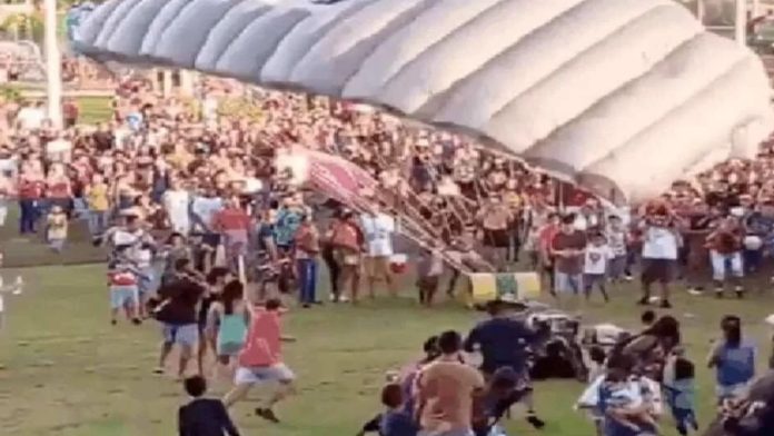 Um incidente ocorreu durante um evento de aviação realizado no último domingo (9) no Parque do Rio Branco, em Boa Vista, Roraima, quando um paraquedista acabou ferindo uma mulher durante o pouso. As imagens capturadas revelam o momento em que a vítima estava entre a multidão, observando o espetáculo de voos executados pelos paraquedistas, quando foi atingida por um deles. É possível notar que o profissional tentou levantar as pernas para evitar o acidente com o público.Paraquedista desvia de fios durante evento de aviação em Boa Vista pic.twitter.com/blffE9j9qq— WWLBD ✌🏻 (@whatwouldlbdo) July 11, 2023